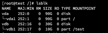 실제로 디스크의 크기는 30GB이고 /dev/vdb1의 파티션 크기는 기존 스냅샷 용량과 동일한 10GB인 걸 확인할 수 있다.