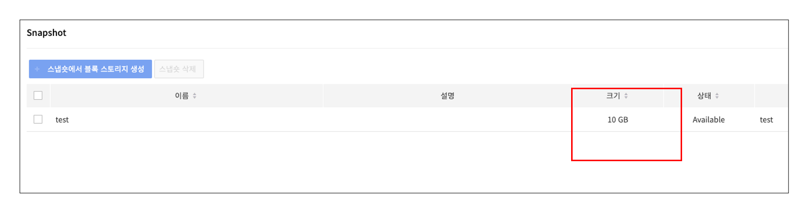 위와 같이 10GB짜리 스토리지의 스냅샷을 생성했다.