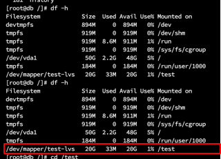 - 명령어4 : xfs_growfs /dev/test(vg이름)/lvs(lv이름)