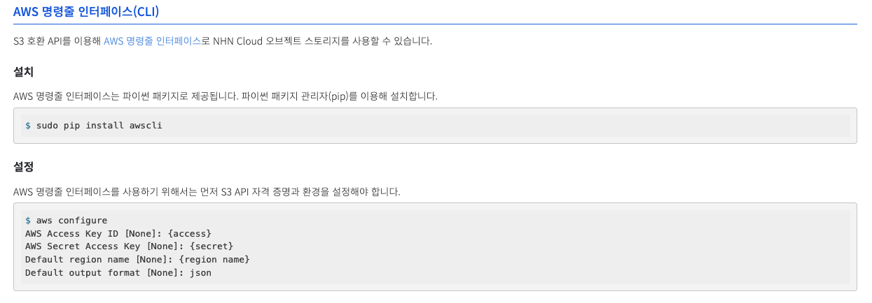 - S3 CLI Client 이용하여 NHN 클라우드 오브젝 스토리지 이용이 가능하다.