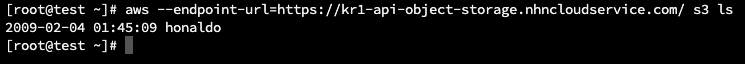 aws --endpoint--url=https://kr1-api-object-storage.nhncloudservice.com s3 ls s3://honaldo